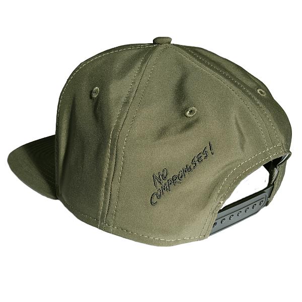 Features: Flat brim, adjustable snap back, embroidered logos on front and side