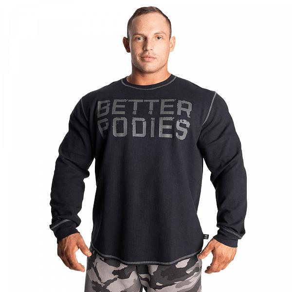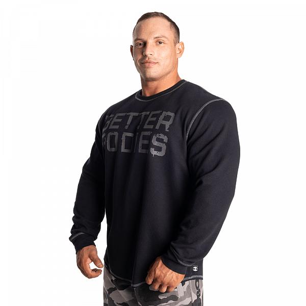 Der BB Thermal Sweater ist ein funktionaler Long Sleeve, mit hoher Qualität. Das leichte Design hält dich warm, ohne dass es dir darunter zu heiß wird. Der Thermal Sweater besteht aus unserem beliebten Thermal-Stoff, welcher sich durch sehr gute Atmungsaktivität und Flexibilität auszeichnet. Er hat einen Better Bodies Druck auf der Brust und ein “old-school-dumbbell" Logo auf dem Nacken.