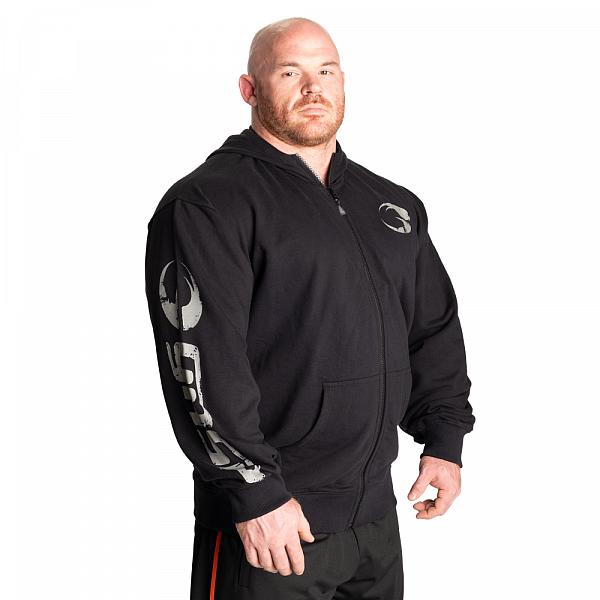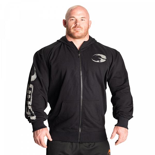 Features: Zipper, handpockets, print on sleeve, small print on chest